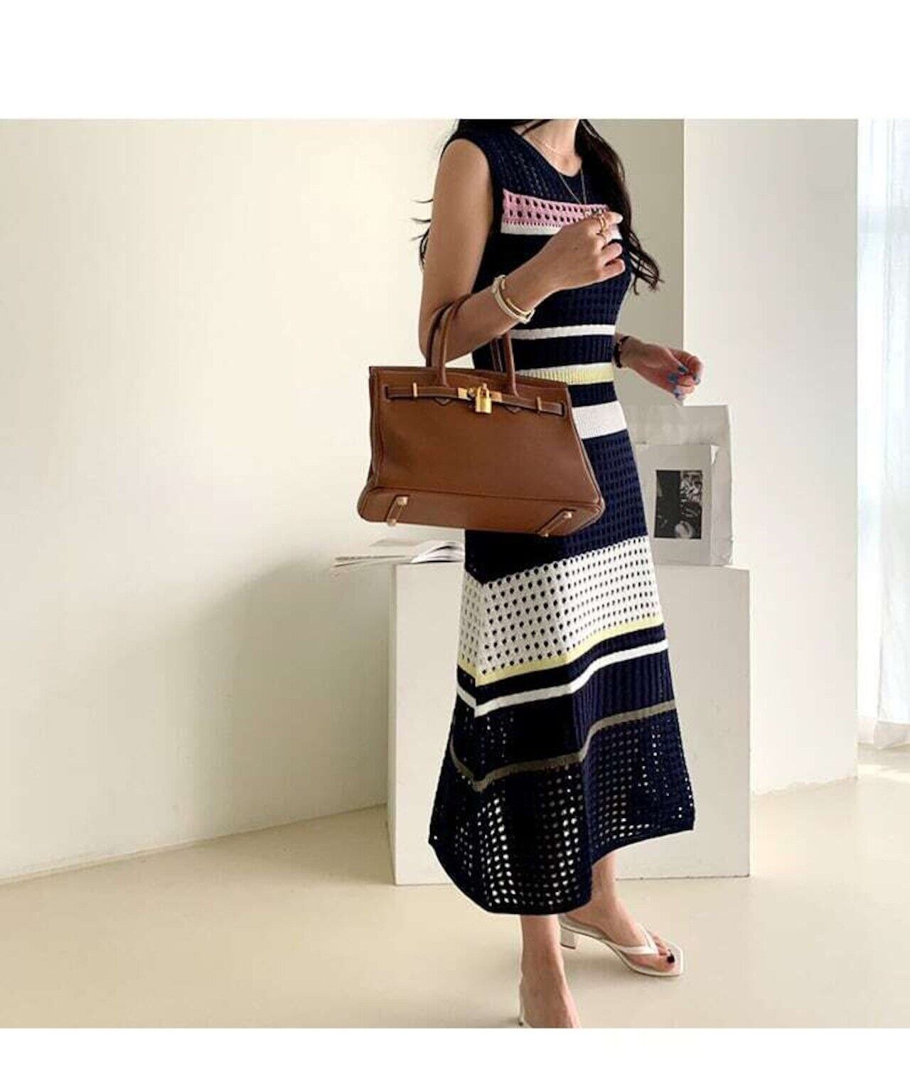2set ニットワンピース キャミワンピース デート 清楚 ボーダー E081