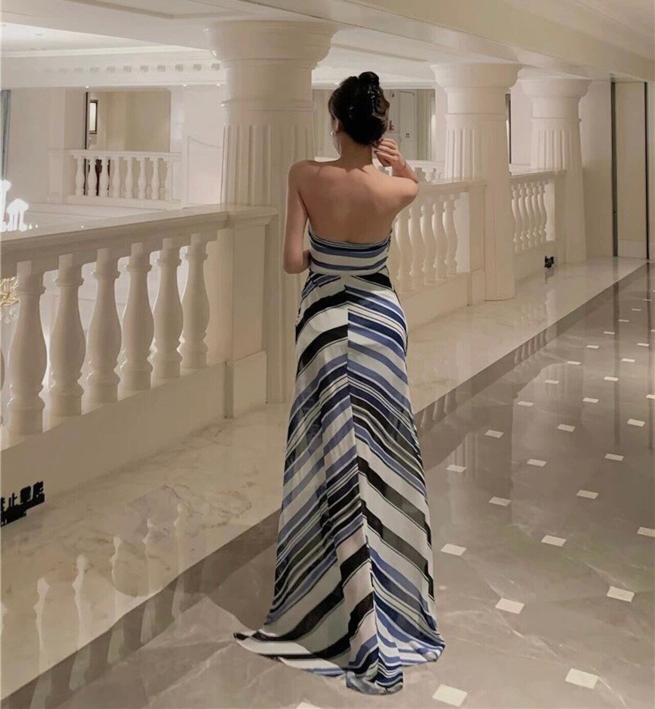 ストライプワンピース ベアトップワンピース リゾート お呼ばれ E299